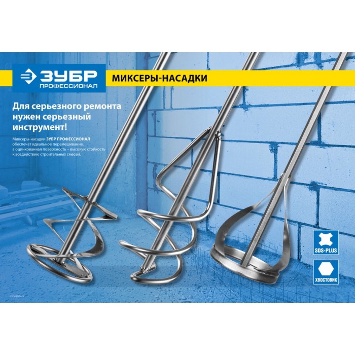 Миксер для песчано-гравийных смесей 100?500 мм шестигранный хвостовик ЗУБР Профессионал 06033-10-50_z02