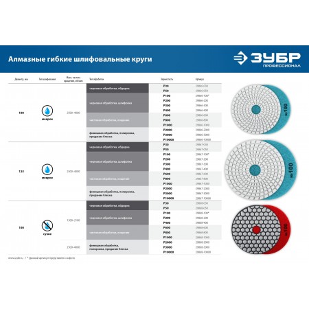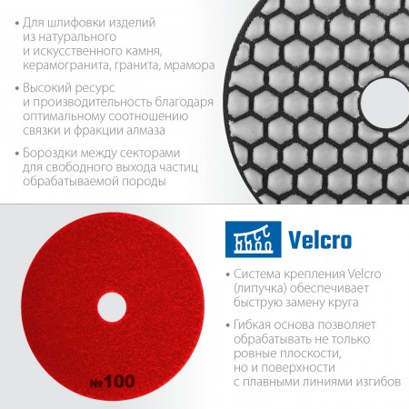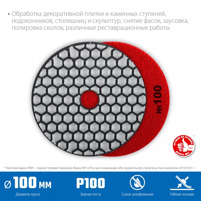ЗУБР 100 мм, №100, сухое шлифование, алмазный гибкий шлифовальный круг АГШК, Профессионал (29868-100)