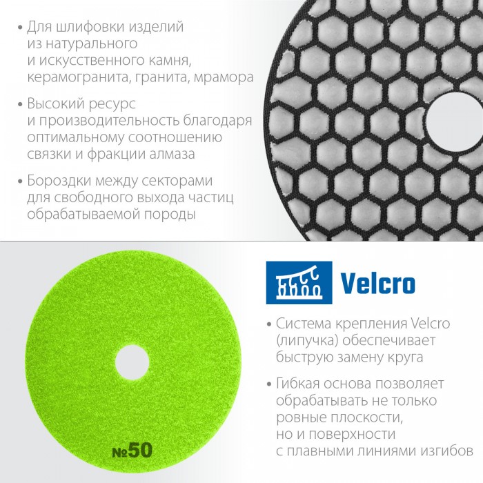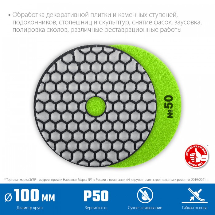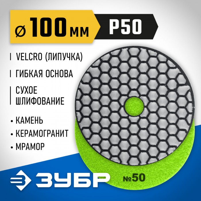 ЗУБР 100 мм, №50, сухое шлифование, алмазный гибкий шлифовальный круг АГШК, Профессионал (29868-050)