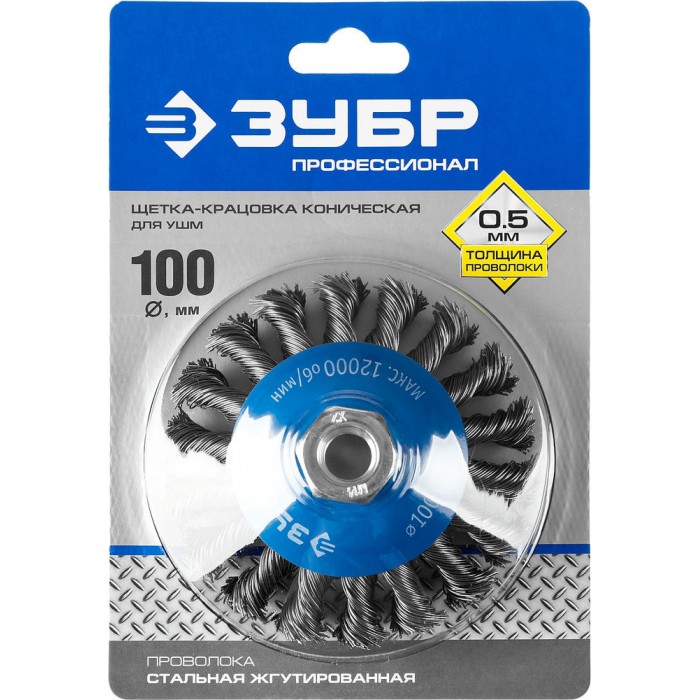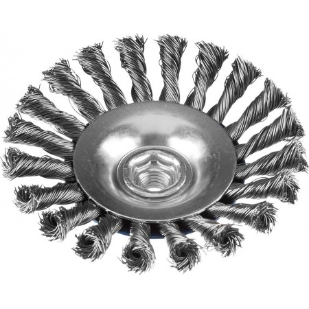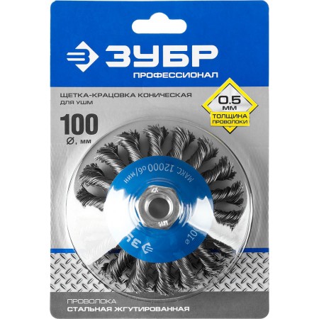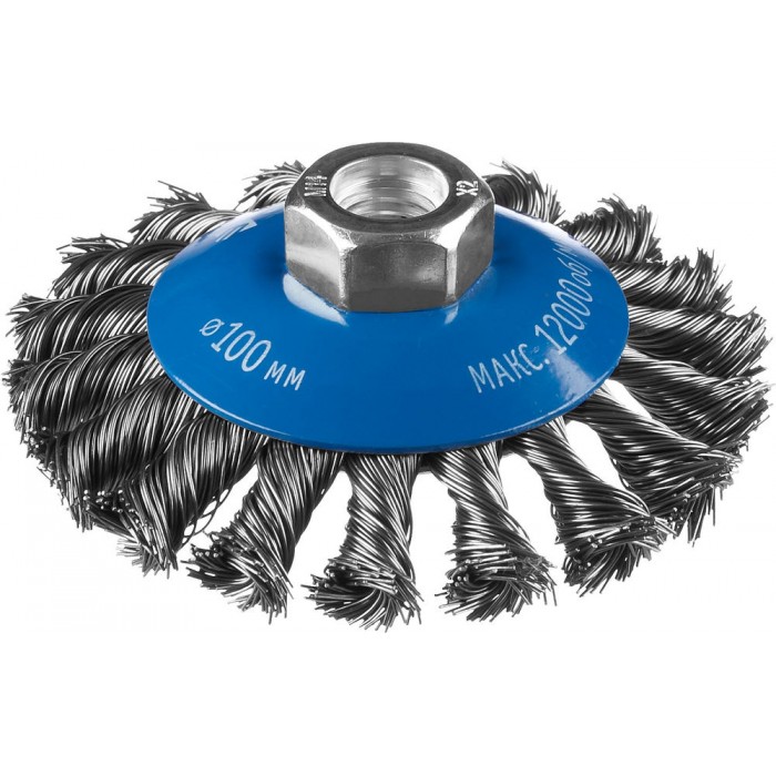 Щетка-крацовка коническая для УШМ 100 мм, жгутированная стальная проволока 0.5 мм ЗУБР Профессионал 35269-100_z02