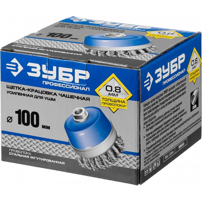 Щетка-крацовка чашечная усиленная для УШМ 100 мм, жгутированная стальная проволока 0.8 мм ЗУБР Профессионал 35271-100_z02