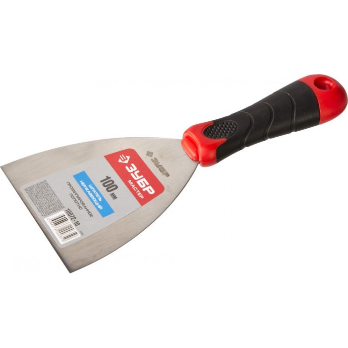 Шпатель нержавеющий 100 мм, профилированное полотно, двухкомпонентная ручка ЗУБР 10072-10