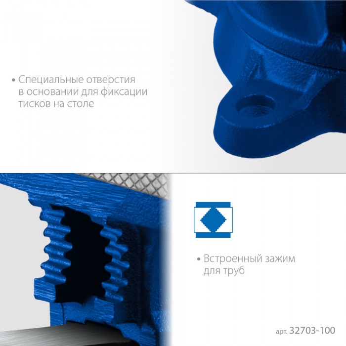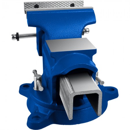 Поворотное основание позволяет перемещать корпус тисков в горизонтальной плоскости на угол от 0 до 360 градусов