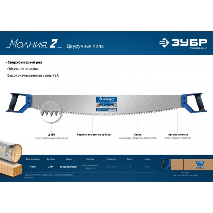 Пила двуручная с пластиковыми рукоятками 1000 мм ЗУБР Профессионал 15241