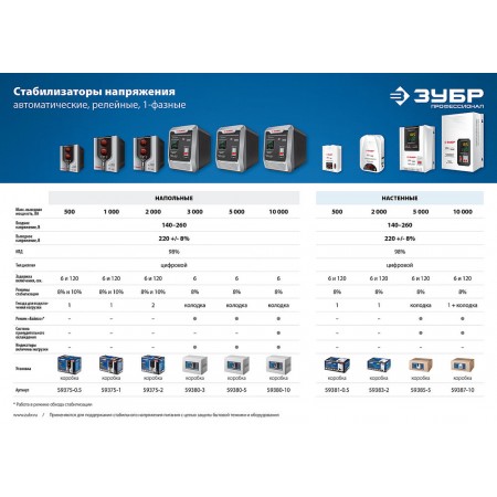 Стабилизатор напряжения ЗУБР предназначен для точного и быстрого выравнивания сетевого напряжения для защиты бытовой техники и оборудования. Устройство обеспечивает эффективную защиту электроприборов от нестабильного по значению напряжения в сети. Релейный тип стабилизации является одним из наиболее надежных. Светодиодная индикация и цифровой дисплей позволяют контролировать состояние устройства и величину выходного напряжения.