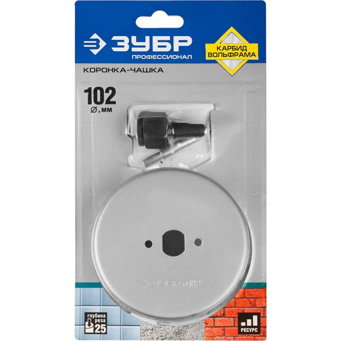 Коронка-чашка 102 мм, L 25 мм, карбид вольфрама ЗУБР Профессионал 33360-102_z01