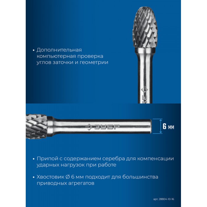 Твердосплавные борфрезы ЗУБР обеспечивают высокую производительность и могут использоваться для обработки различных материалов