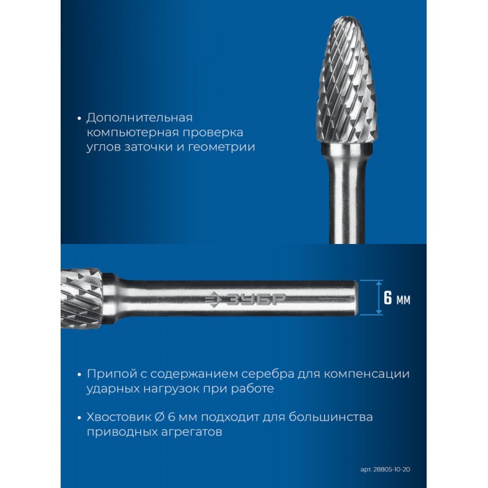 Твердосплавные борфрезы ЗУБР обеспечивают высокую производительность и могут использоваться для обработки различных материалов