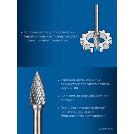 Борфреза твердосплавная 10?20 мм тип G парабола с острым углом хв-к 6 мм Профессионал ЗУБР 28806-10-20