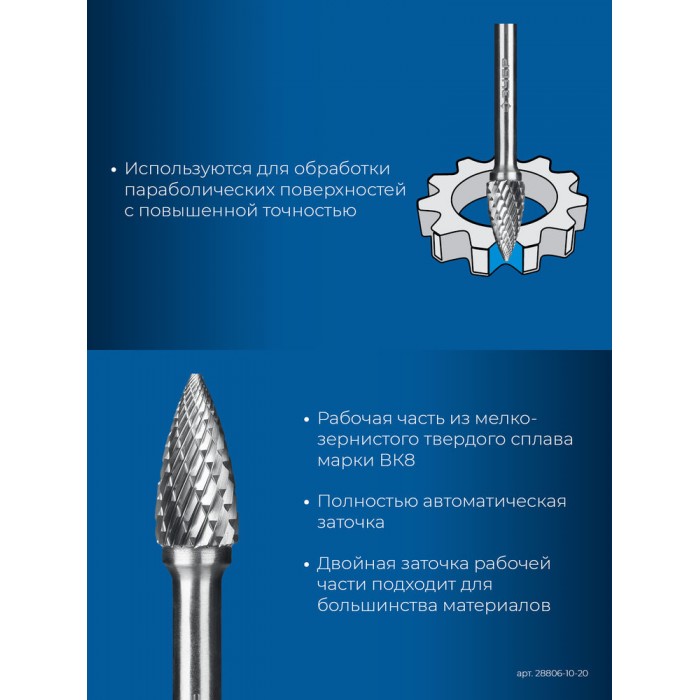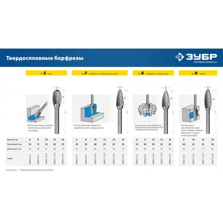Твердосплавные борфрезы ЗУБР обеспечивают высокую производительность и могут использоваться для обработки различных материалов