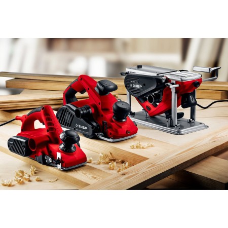 Мощный рубанок для строгания и выравнивания поверхностей, выборки четвертей и снятия фасок, который способен обрабатывать древесину любой твердости шириной 110 мм и глубиной до 3.5 мм. Широкая функциональность: электронная система защиты и управления двигателем, выборка четверти, изменяемое направление выброса стружки (влево и вправо), дополнительная рукоятка для удобного хвата, пазы для снятия фасок разной ширины, откидной башмак для защиты заготовки и оператора.