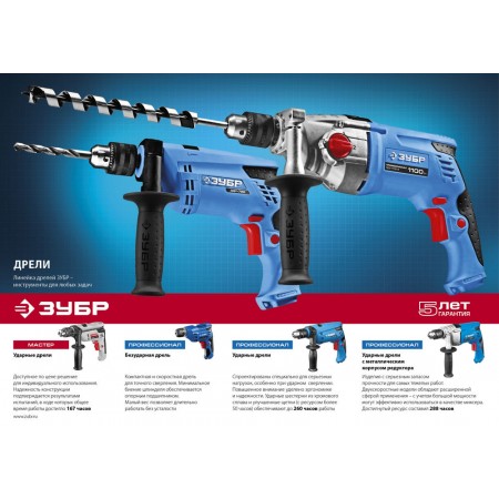 Незаменимый помощник для сверления отверстий в различных материалах (дерево, сталь и т. д.). Благодаря микроудару подходит для алмазного сверления. Профессионального уровня дрель с металлическим корпусом, двухскоростным редуктором, качественным кулачковым патроном, плавной регулировкой оборотов и надежной конструкцией на подшипниках - лучший подарок мастеру. Функция сверления с ударом, широкий диапазон регулировки частоты вращения, удобная дополнительная рукоятка - все, что нужно для качественной работы