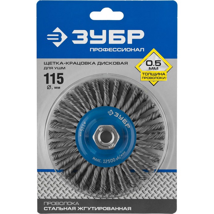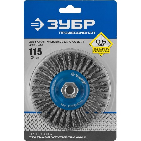 Щетка дисковая для УШМ 115 мм, жгутированная стальная проволока 0.5 мм ЗУБР Профессионал 35192-115_z02