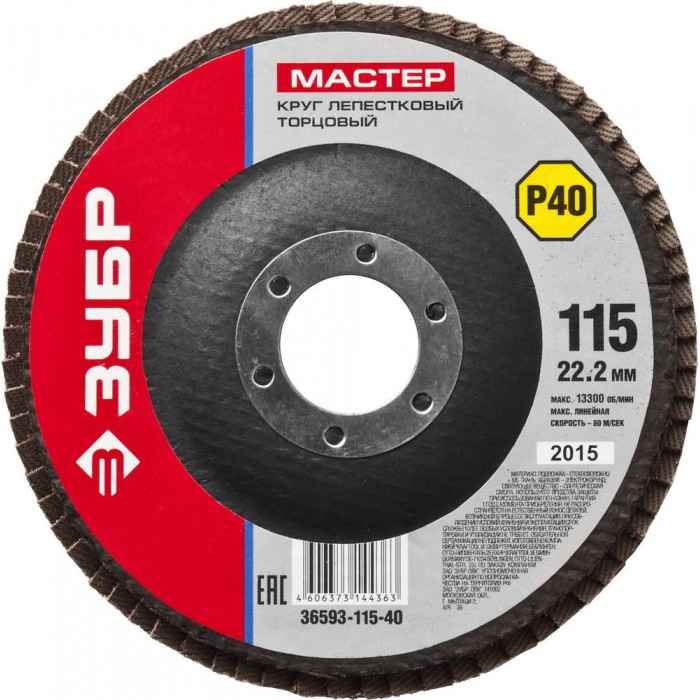 ЗУБР 115 мм, P40, КЛТ, круг лепестковый торцевой (36593-115-40)
