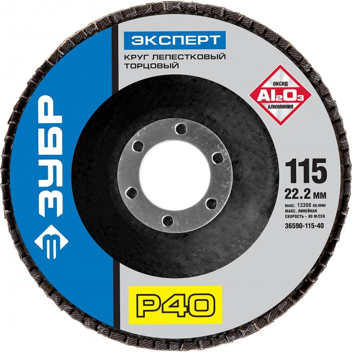 ЗУБР 115 мм, P40, КЛТ, круг лепестковый торцевой, Профессионал (36590-115-40)
