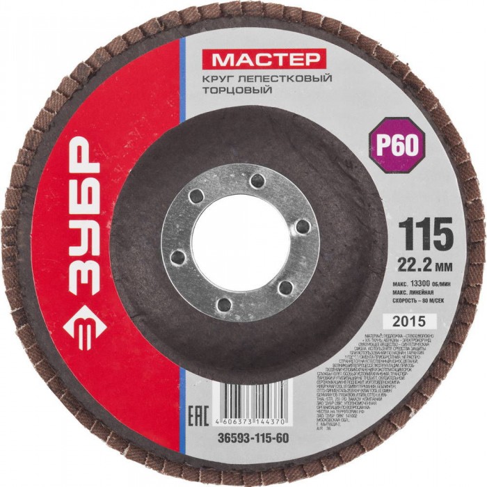 ЗУБР 115 мм, P60, КЛТ, круг лепестковый торцевой (36593-115-60)