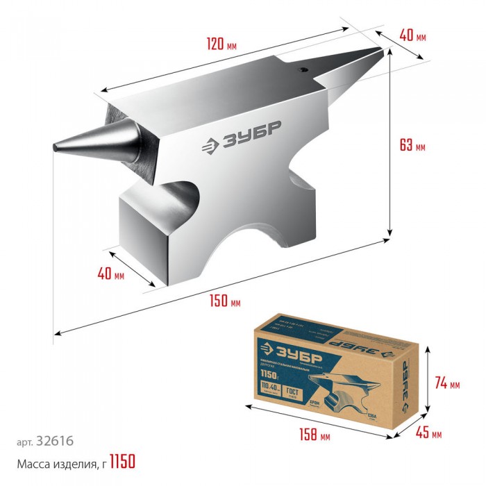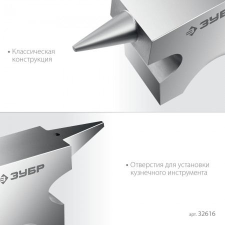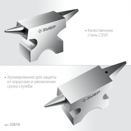 Стальная двурогая наковальня ЗУБР (шперак) для ювелирных работ и работы с проволокой . Антикоррозионное покрытие хромированием Сталь С35Л. Поверхность закалена на глубину 0,8-1,5 мм. Твердость рабочей части HB 340-477. Отверстия Ø3-4 мм для установки инструмента. Увеличенный срок службы. Для точных работ. Серия Профессионал У настольной версии предусмотрены отверстия для жеской фиксации на столе.