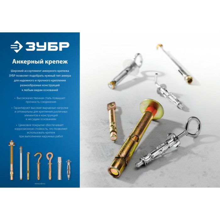 - Желтопассивированное покрытие обеспечивает устойчивость изделия к воздействию влаги, что позволяет использовать анкеры при выполнении наружных работ