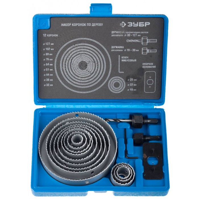 Использование высококачественных материалов и самых современных методов изготовления позволяют получать отверстия большого диаметра в древесине, фанере, ДСП, клееных щитах и пластмассе. А оптимально подобранная комплектация содержит наиболее востребованные размеры