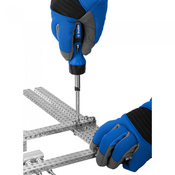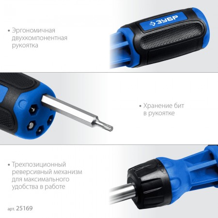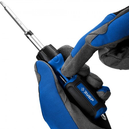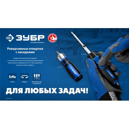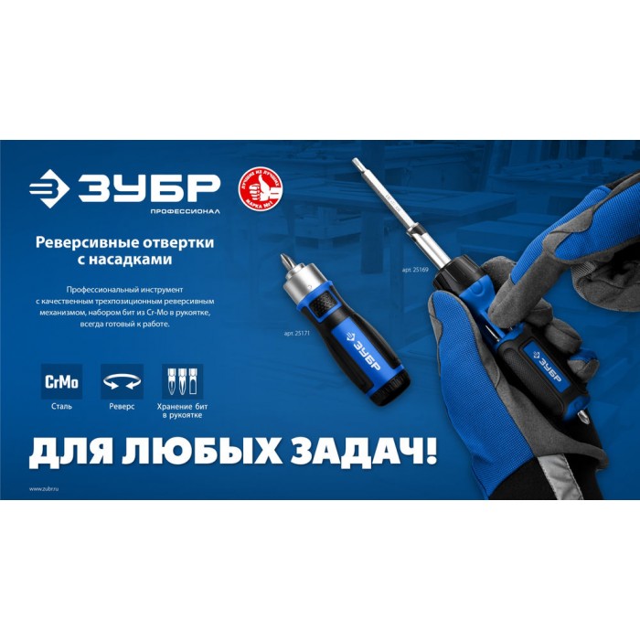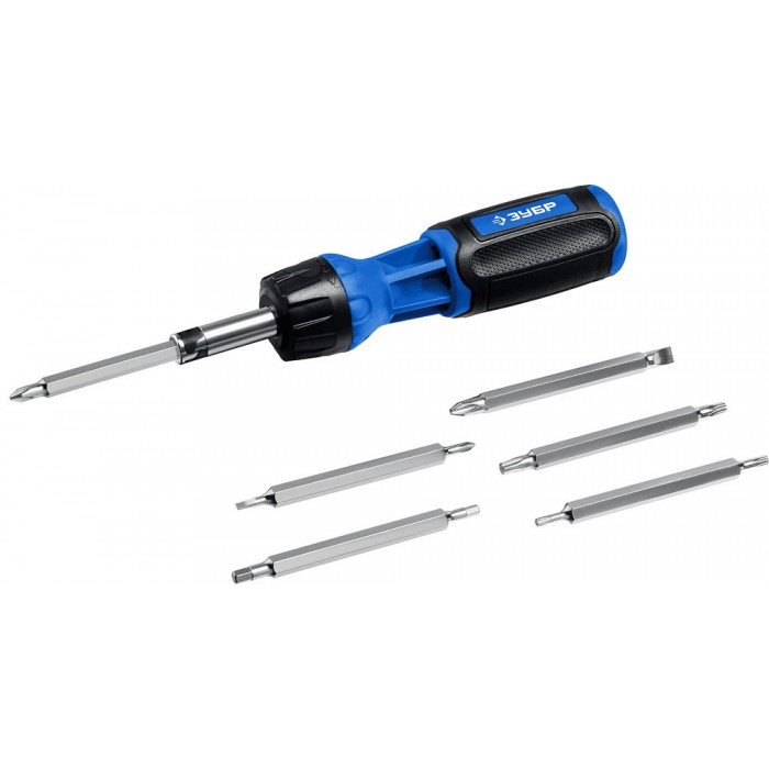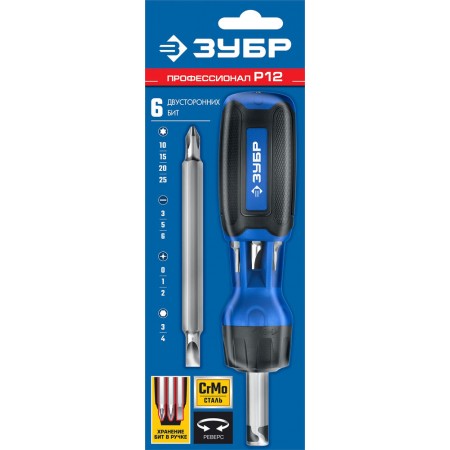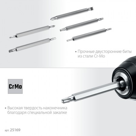Реверсивная отвертка с двухсторонними переставными стрежнями выдерживает высокие нагрузки, благодаря высокой твердости наконечника и специальной закалке. Хранение стержней в рукоятке позволяет всегда иметь готовую к работе отвертку под рукой