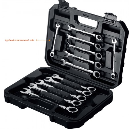 Набор ключей гаечных комбинированных трещоточных 12 шт 8-19 мм Профессионал ЗУБР 27073-H12