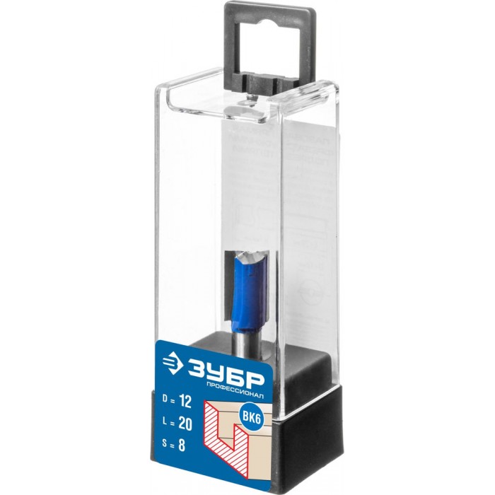 Фреза пазовая прямая 12?19 мм с нижними подрезателями хвостовик 8 мм ЗУБР Профессионал 28755-12-19
