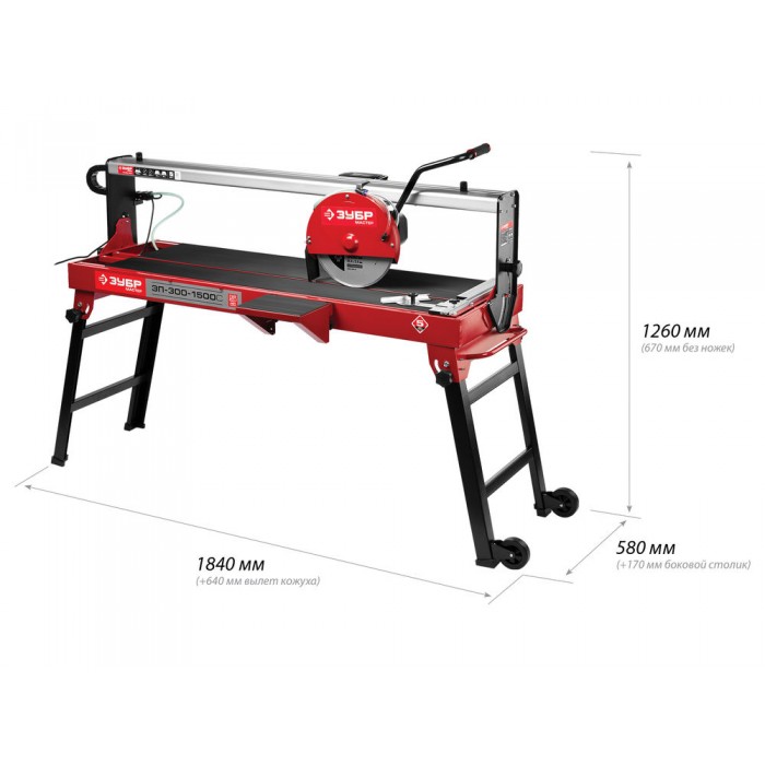 Мощный и высокоточный инструмент для резки всех видов плитки с впечатляющей длиной реза - 1200мм. Профессиональная конструкция подшипникого узла подвижной головки диска гарантирует высокую точность линии реза и мягкий ход каретки. Влажный рез с принудительной подачей воды к месту реза способствует эффективному охлаждению и предохраняет от образования пыли