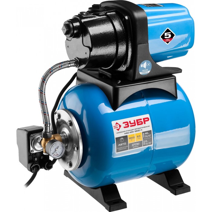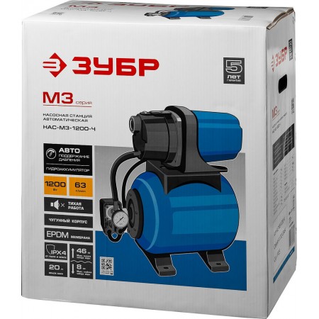 Насосная станция автоматическая 1200 Вт, бак 20 л, чугунный корпус ЗУБР НАС-М3-1200-Ч