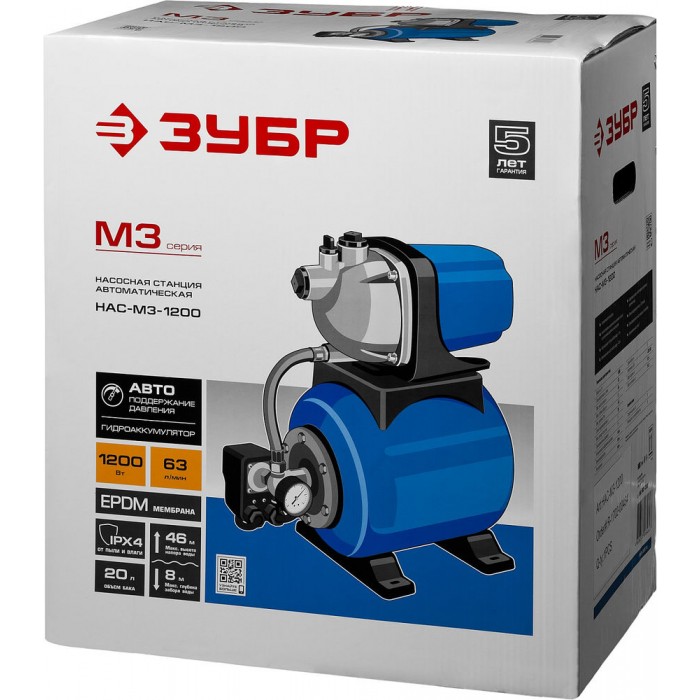 - Объем гидроаккумулятора 20 л обеспечивает полноценный водоразбор с более редкими включениями насоса, что продлевает срок его службы и способствует экономии электроэнергии