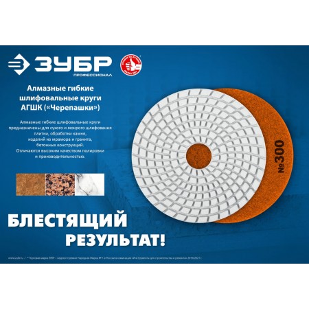 Для шлифовки и полировки изделий из натурального и искуственного камня, керамогранита, гранита, мрамора с применением водяного охлаждения. Используется на ручном электроинструменте (УШМ, полировальные машины, дрели) с насадкой адаптером под липучку Velcro.