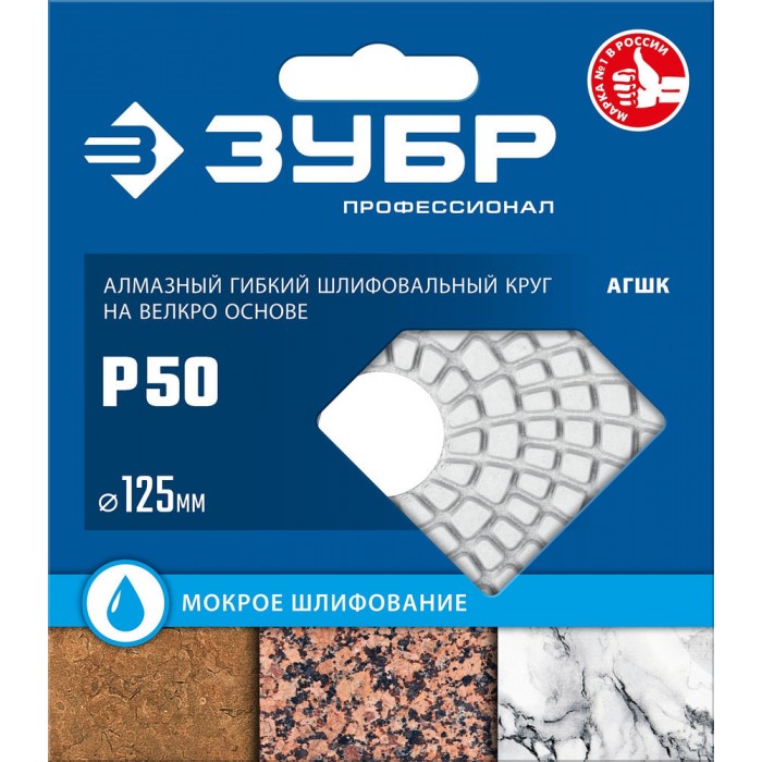 Круг алмазный гибкий шлифовальный АГШК 125 мм, №1000, мокрое шлифование ЗУБР Профессионал 29867-1000