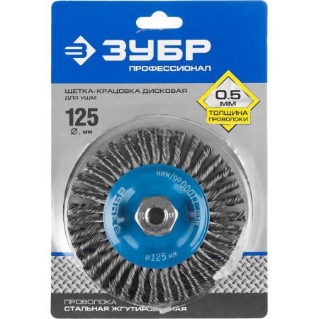 Щетка дисковая для УШМ 125 мм, стальная проволока 0.5 мм ЗУБР Профессионал 35192-125_z02