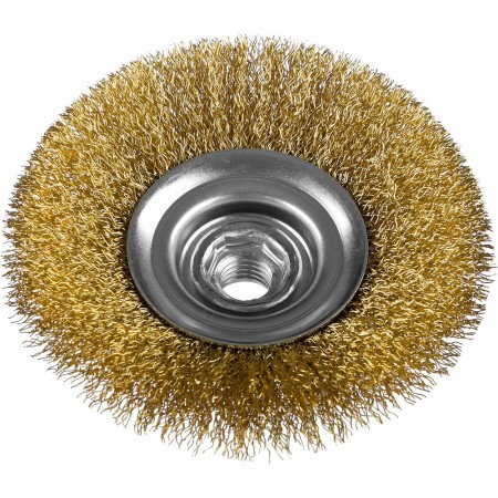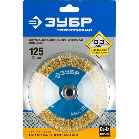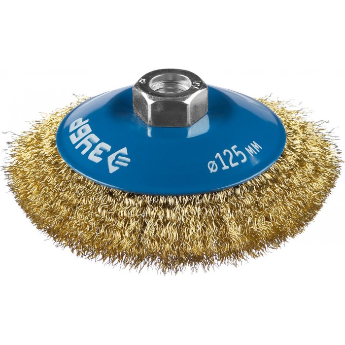 Щетка-крацовка коническая для УШМ 125 мм, витая стальная латунированная проволока 0.3 мм ЗУБР Профессионал 35267-125_z02