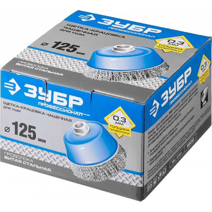 Щетка-крацовка чашечная для УШМ 125 мм витая стальная проволока 0.3 мм Профессионал ЗУБР 35261-125