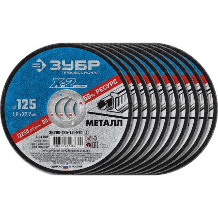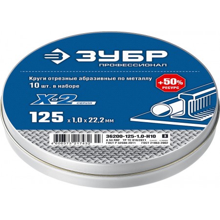 Набор кругов отрезных 125?1.0?22.2 мм по металлу для УШМ 10 шт ЗУБР Профессионал 36200-125-1.0-H10_z03