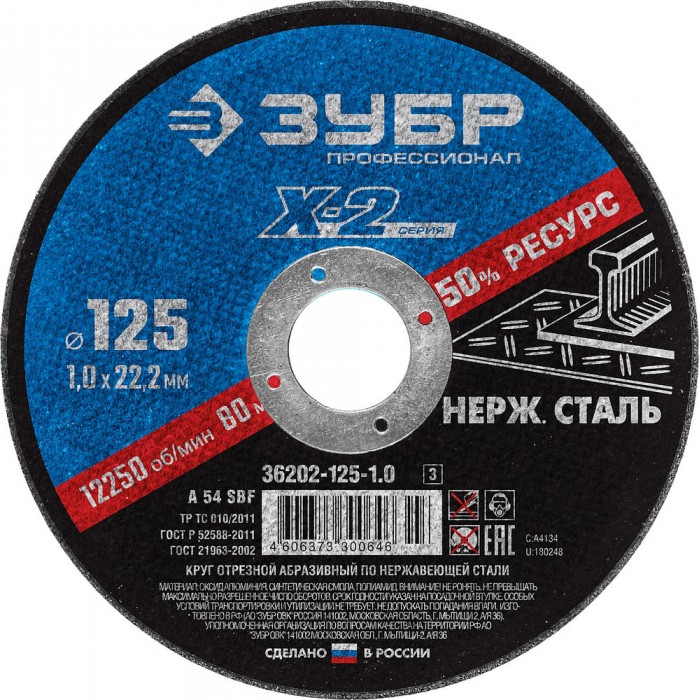 Круг отрезной 125?1.0?22.2 мм по нержавеющей стали ЗУБР Профессионал 36202-125-1.0_z03