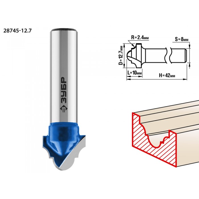 Фреза пазовая фасонная №6 12.7?10 мм радиус 2.4 мм ЗУБР Профессионал 28745-12.7