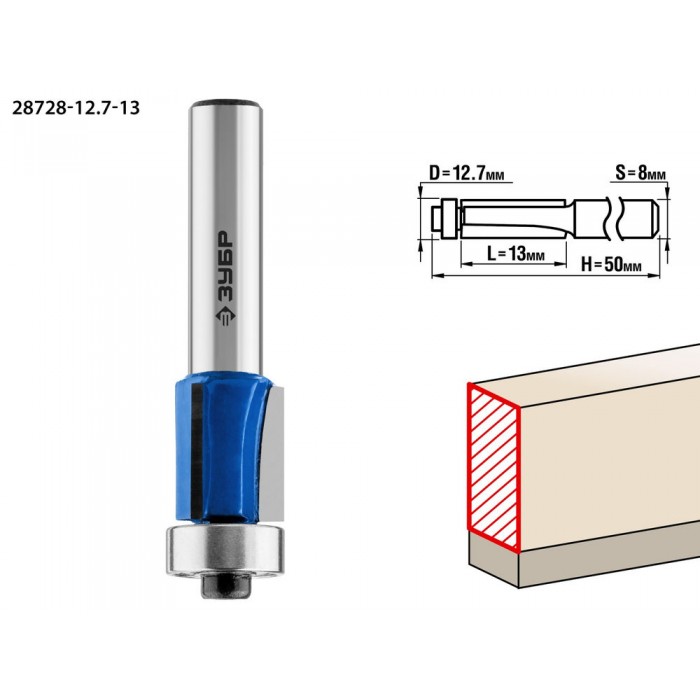 Фреза кромочная 12.7?13 мм с нижним подшипником хвостовик 8 мм ЗУБР Профессионал 28728-12.7-13