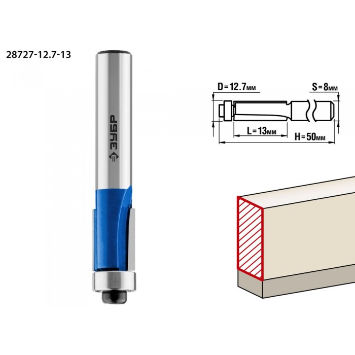 Фреза кромочная 12.7?13 мм с нижним подшипником хвостовик 8 мм ЗУБР Профессионал 28727-12.7-13