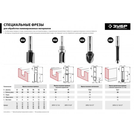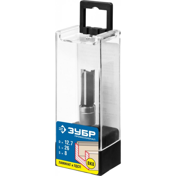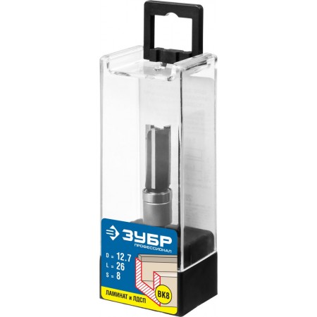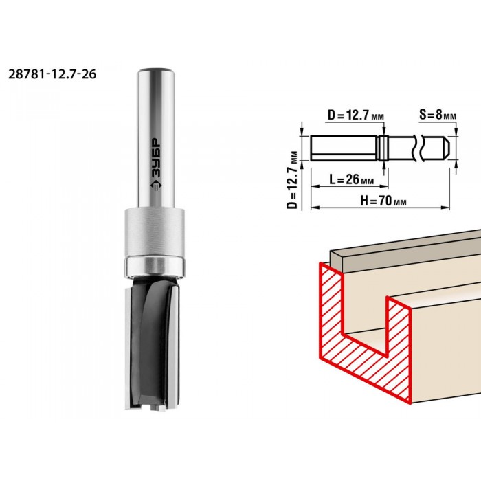 Фреза пазовая прямая 12.7?26 мм с верхним подшипником хвостовик 8 мм ЗУБР Профессионал 28781-12.7-26