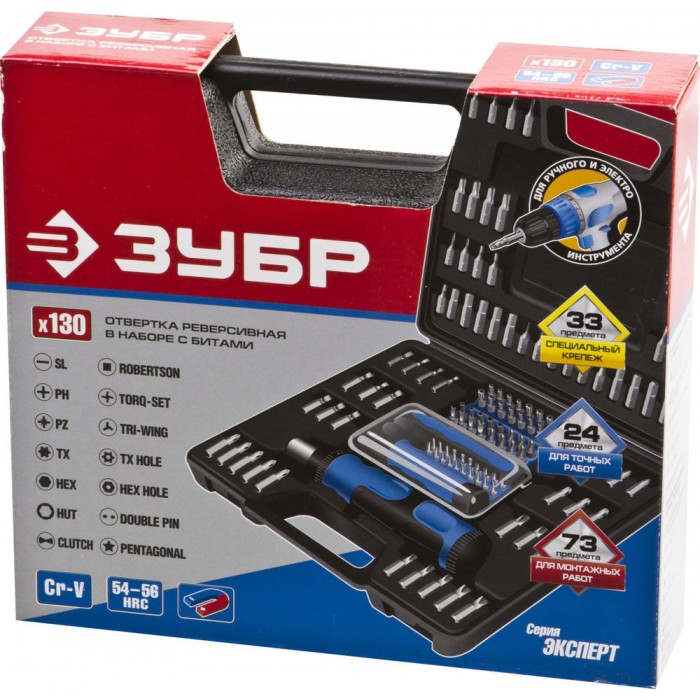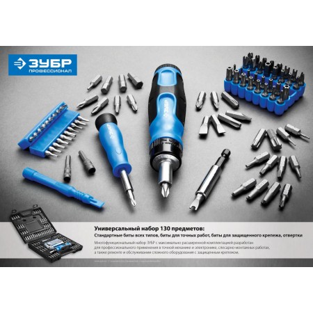 Набор реверсивная отвертка с насадками 129 предм. Профессионал ЗУБР 25237-H129