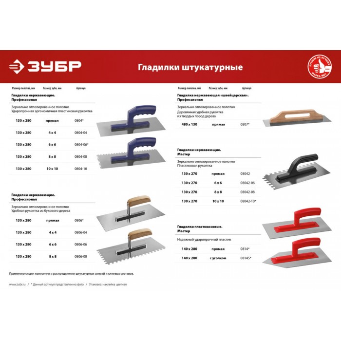 Зеркально отполированное нержавеющее полотно обеспечит надежность конструкции, лучшую защиту от коррозии, а удобная рукоять из пластмассы обеспечит комфортную работу при нанесении и распределении штукатурных смесей и клеевых составов.