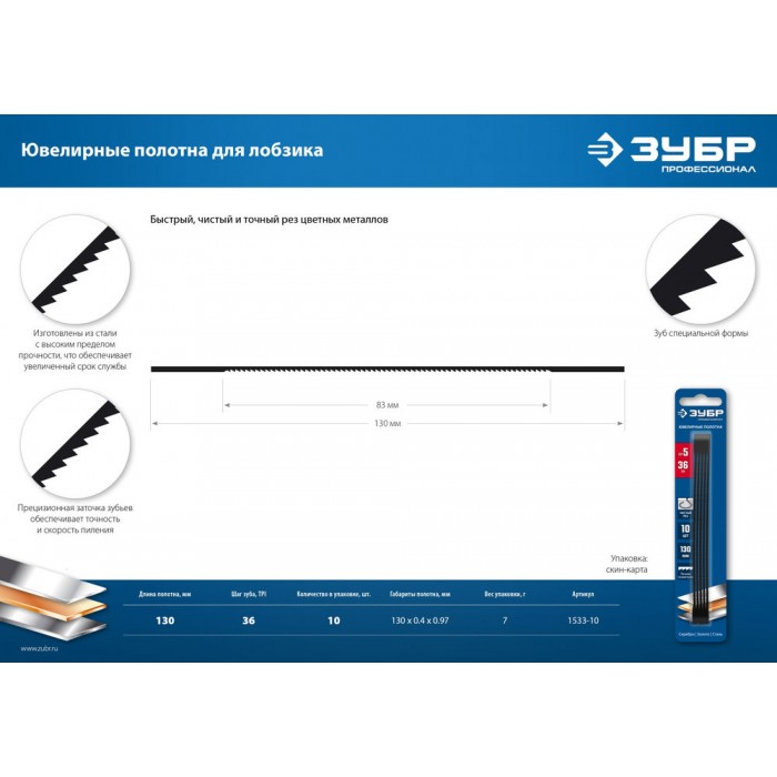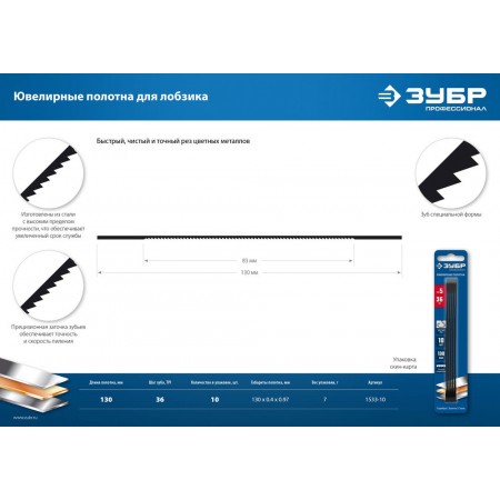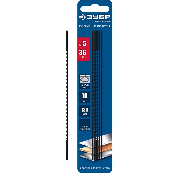 Полотна ювелирные для лобзика 130 мм 36 TPI 10 шт Профессионал ЗУБР 1533-10