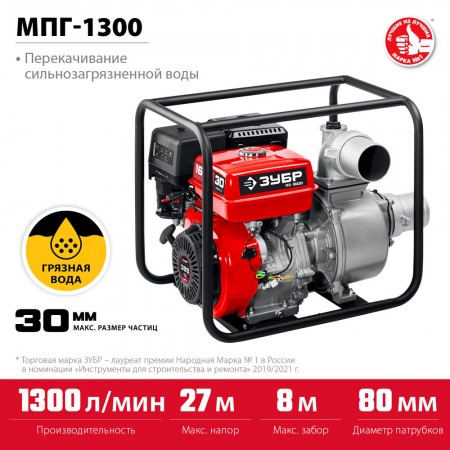 Мощная мотопомпа для перекачивания сильнозагрязненной воды. Обеспечивает высоту напора до 27 м. Идеальна для тяжелых условий работы на стройке