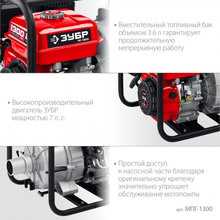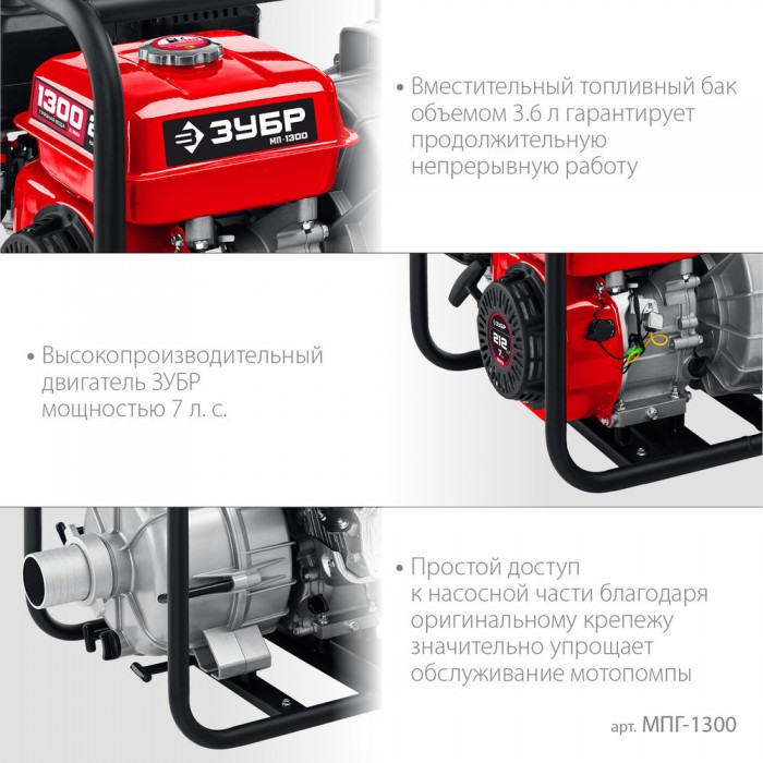 - Простой доступ к насосной части благодаря оригинальному крепежу значительно упрощает обслуживание мотопомпы