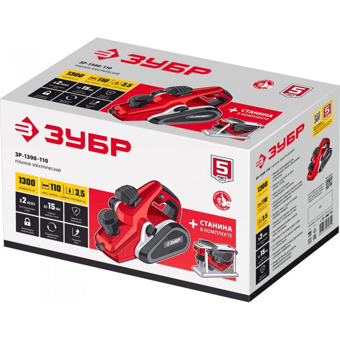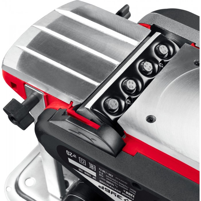 Мощный рубанок для строгания и выравнивания поверхностей, выборки четвертей и снятия фасок, который способен обрабатывать древесину любой твердости шириной 110 мм и глубиной до 3.5 мм. Максимальная функциональность: станина для установки в стационарное положение, электронная система защиты и управления двигателем, выборка четверти, изменяемое направление выброса стружки (влево и вправо), дополнительная рукоятка для удобного хвата, пазы для снятия фасок разной ширины, откидной башмак для защиты заготовки и оператора.