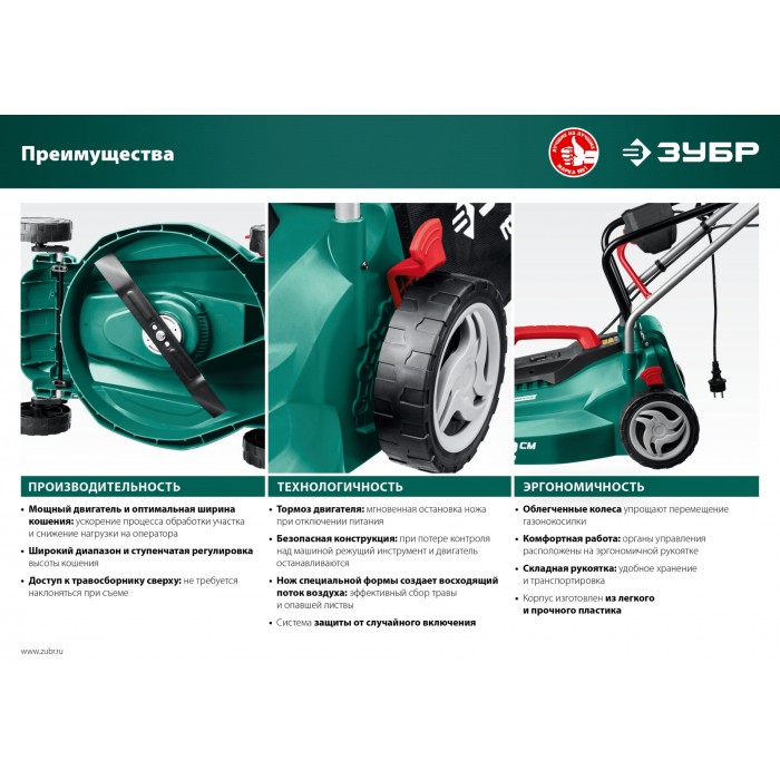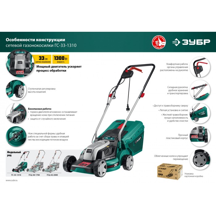 ЗУБР 1300 Вт, ш/с 33 см, сетевая газонокосилка (ГС-33-1310)