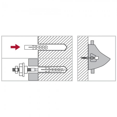 Крепление писсуаров к бетонному или кирпичному основанию. Диаметр предварительного сверления: 14 мм.