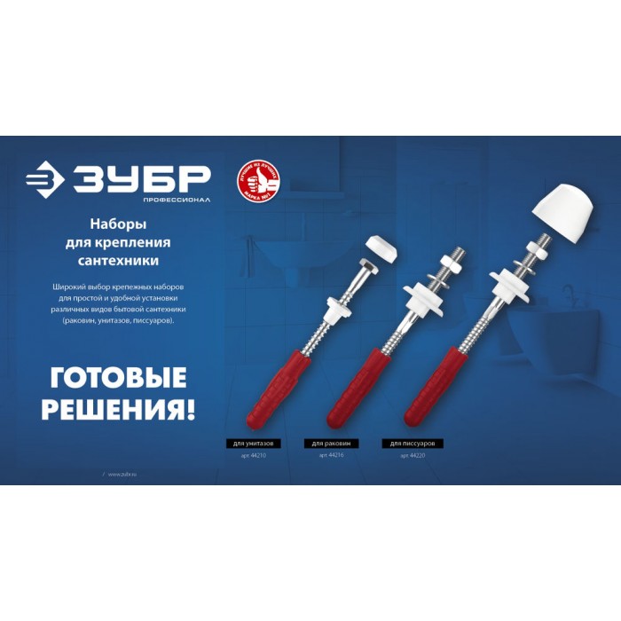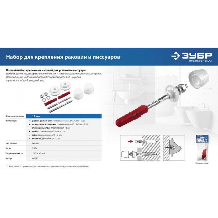 Набор для крепления раковин и писсуаров 14 мм, белый ЗУБР Профессионал 44220_z01