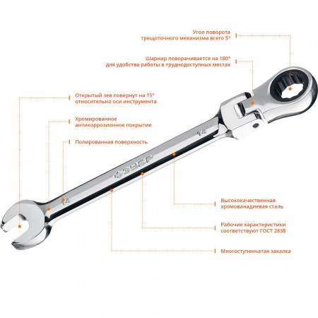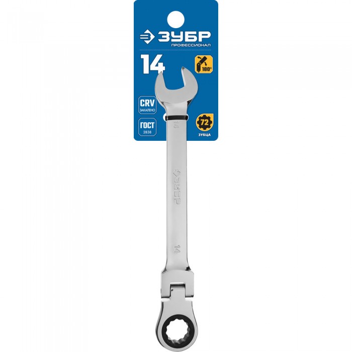 Ключ гаечный шарнирный трещоточный 14 мм Профессионал ЗУБР 27101-14